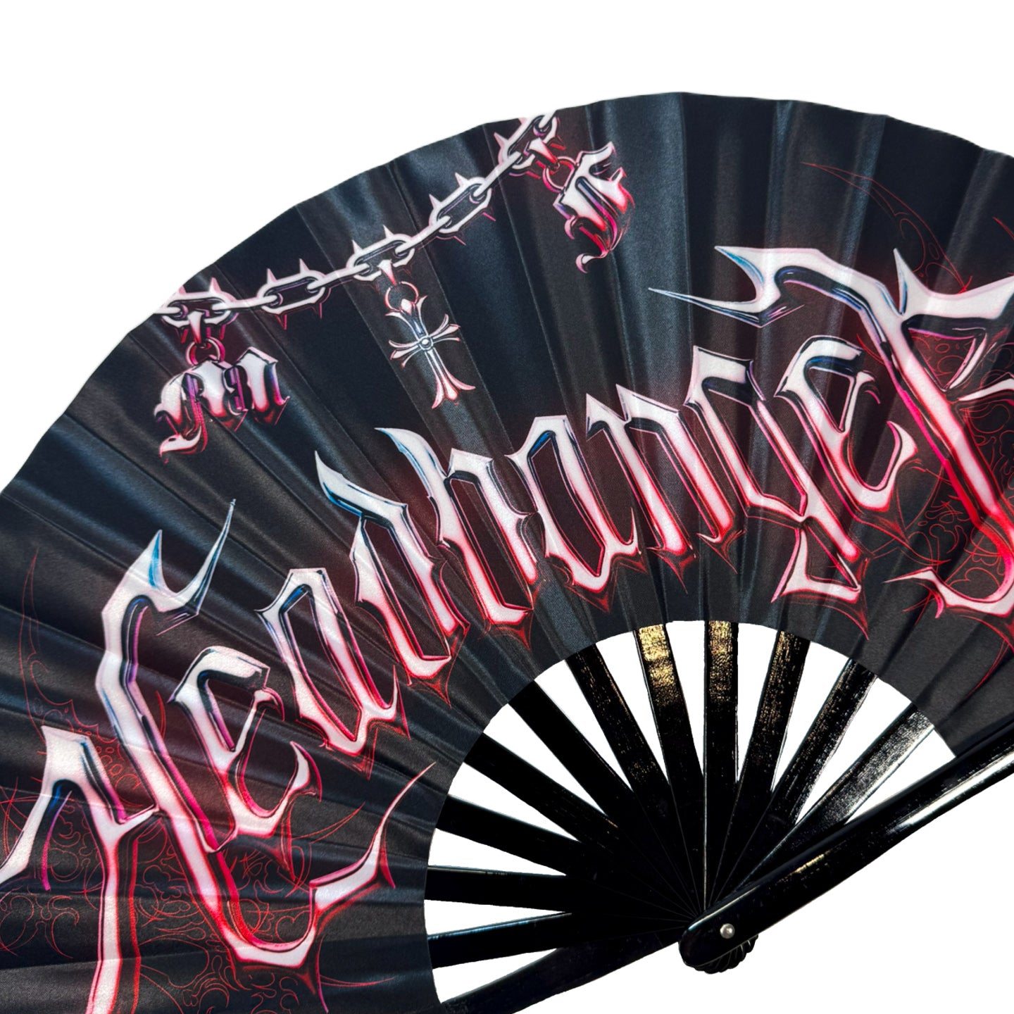 Our Headbanger Rave Fan is made for the dubstep & bass addicts and mosh pit warriors, featuring blood-red gothic lettering, barbed wire chains, and electric tribal accents that scream raw energy. Designed to match the rhythm of relentless drops and heavy kicks, this fan is an emblem of unfiltered intensity